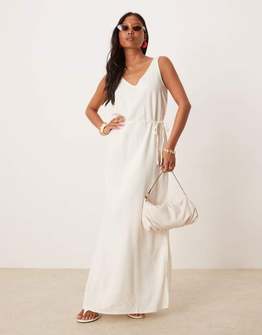 JDY Petite - Hvid maxikjole med bindebånd i hørblanding