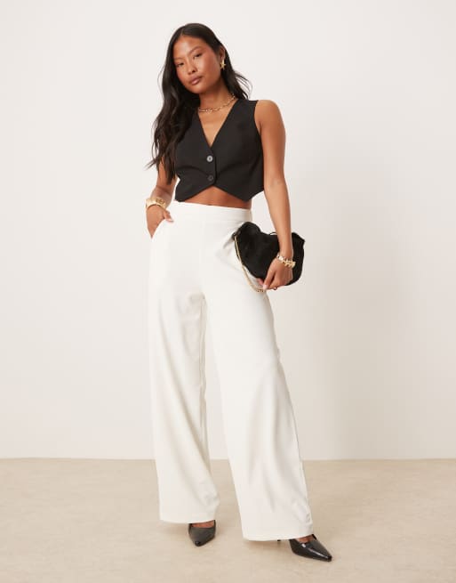 JDY Petite - Hvide skræddersyede bukser med brede ben