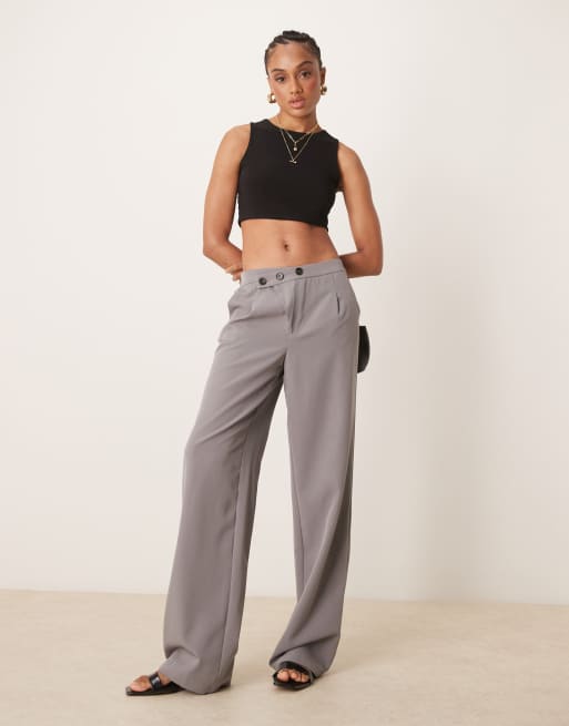 JDY Tall - Grå asymmetriske bukser med knapper og vide ben