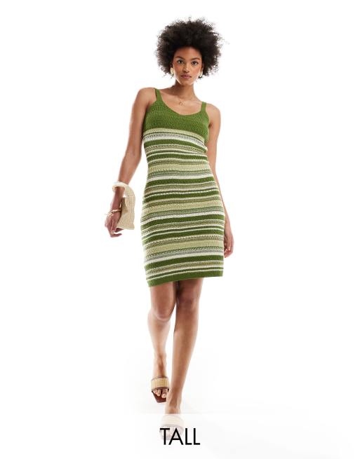 JDY Tall - Strikket kjole med striber i kakigrøn