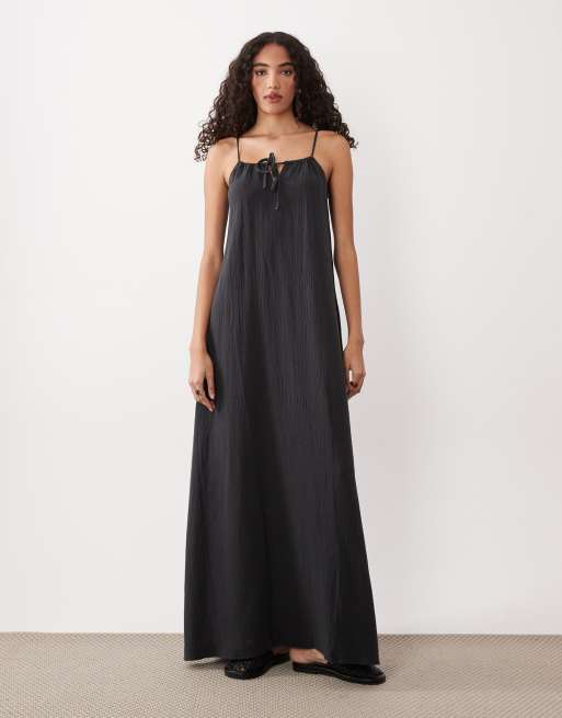 JDY Tall - Vasket sort ærmeløs minikjole i ostelærred