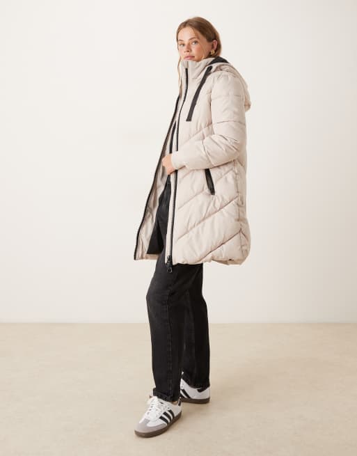 JDY - Beige og polstret frakke med chevronmønster og hætte