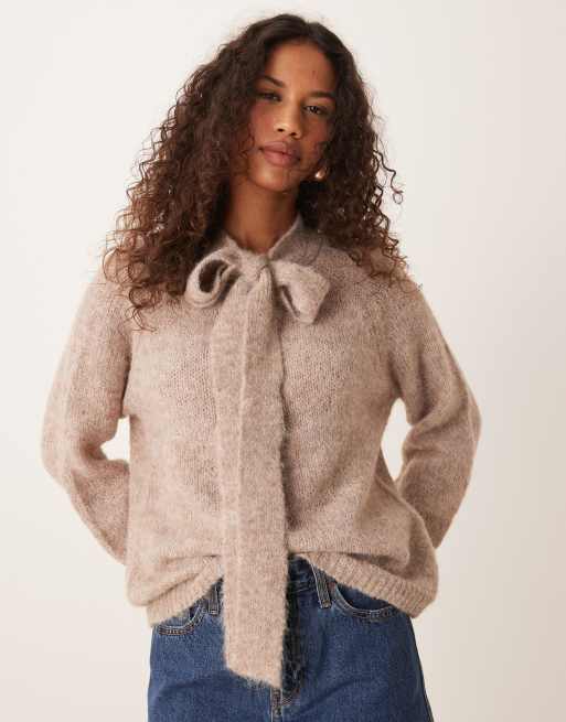 JDY - Beigemeleret striktrøje med sløjfedetalje