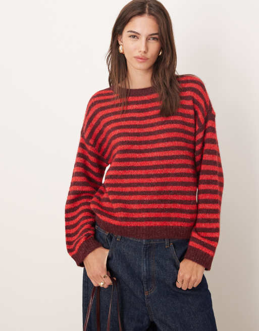 JDY - Bordeauxrød og stribet trøje med tekstur