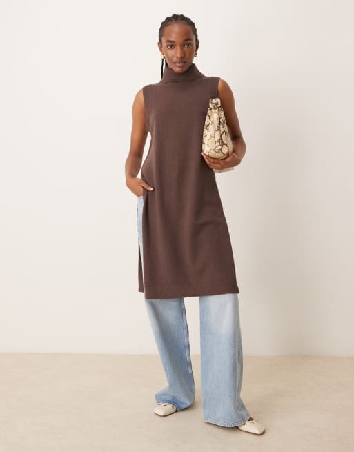 JDY - Chokoladebrun longline-trøje med høj hals i strik