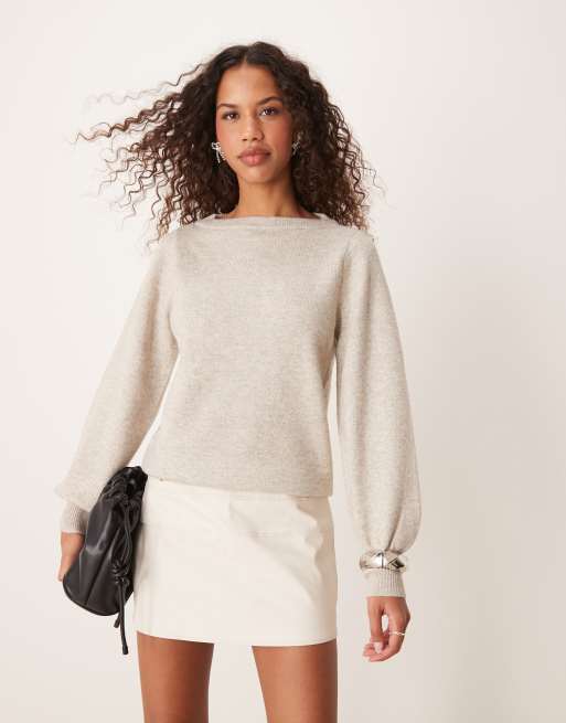 JDY - Cremehvid strikket trøje med glimmer og bådudskæring