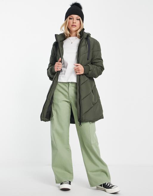 JDY - Foret frakke med hætte og chevron-mønster i kakigrøn