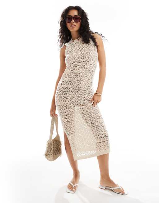 JDY - Hæklet tanktop-midikjole med hulmønster i beige