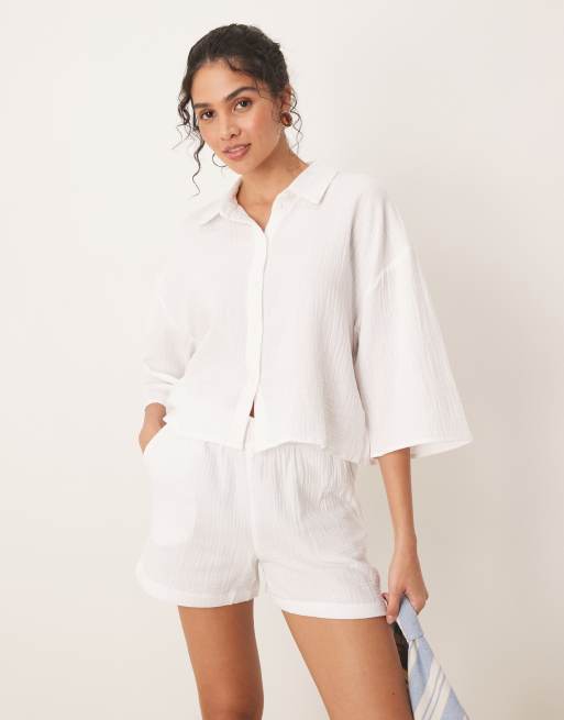 JDY - Hvid cropped skjorte i ostelærred - Del af sæt