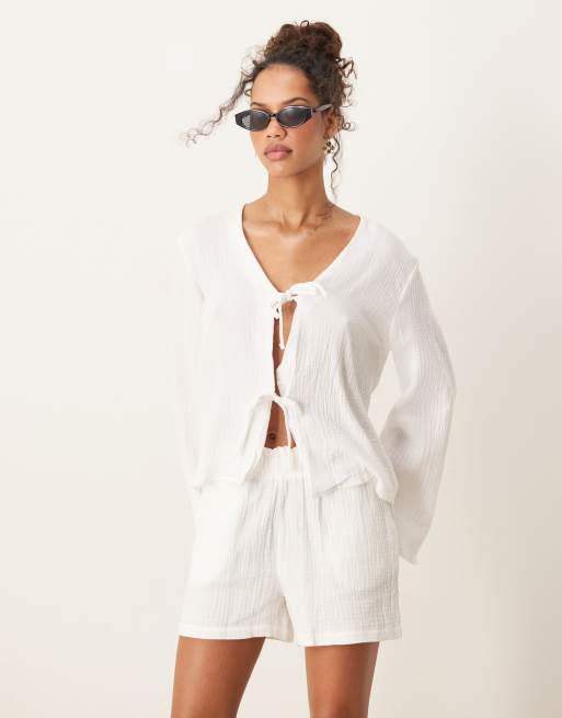 JDY - Hvid skjorte i ostelærred med bindefront - Del af sæt