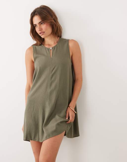 JDY - Khaki plisseret minikjole i hørblanding