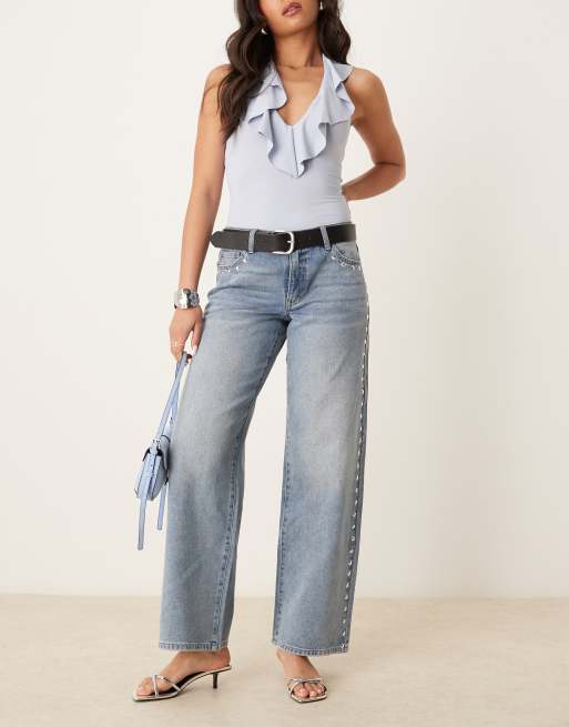 JDY - Lyseblå western-jeans med brede ben og nittedetaljer