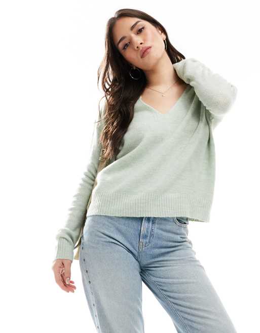 JDY - Lysegrøn strikke trøje med V-hals og lange ærmer