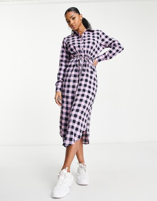 JDY - Midi-skjortekjole i lyserøde/sorte tern - Kun hos ASOS