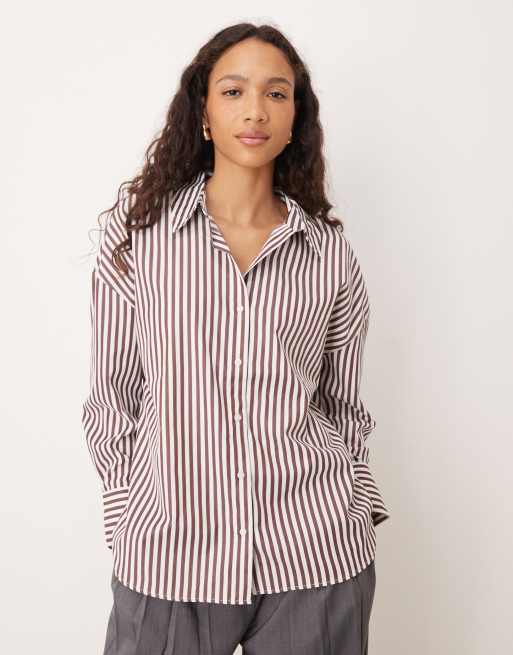 JDY - Mørk bordeaux skjorte med striber i løstsiddende pasform