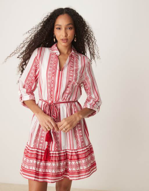 JDY - Rød minikjole med bindebånd i taljen og print