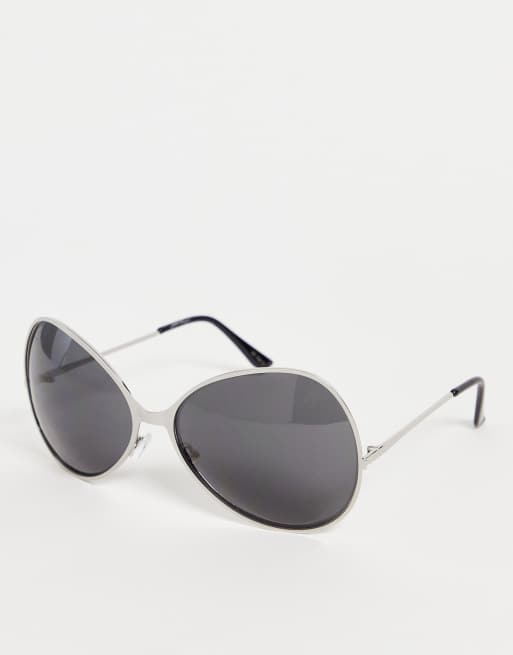 Jeepers Peepers - Ekstremt store runde solbriller i sølvfarve