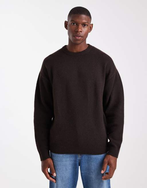 JJ Rebel - Mørkebrun vamset trøje med rund hals i afslappet pasform