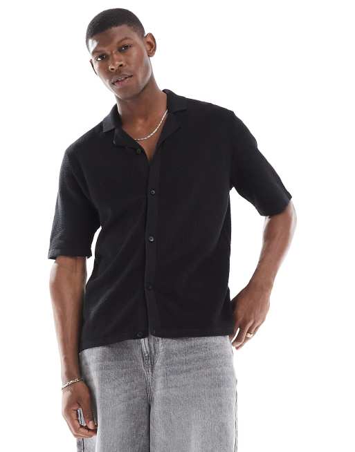 JJ Rebel - Sort strikket polo med reverskrave og knapper