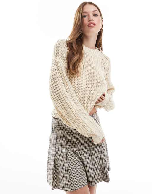 JJXX - Chunky og cropped trøje i kærnemælksfarve