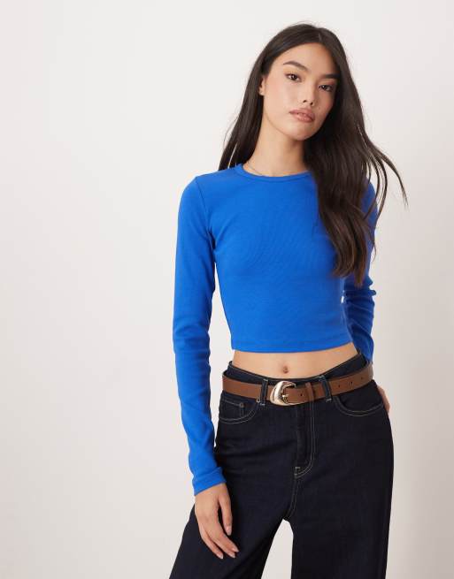 JJXX - Feline - Ribstrikket og blå T-shirt med lange ærmer
