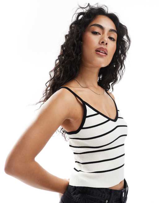 JJXX - Hvid ribstrikket top med stropper og sorte striber