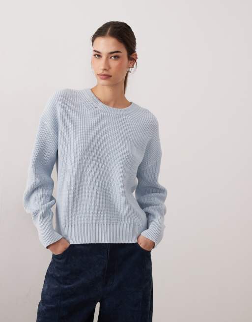 JJXX - Ribstrikket lyseblå trøje med rund hals