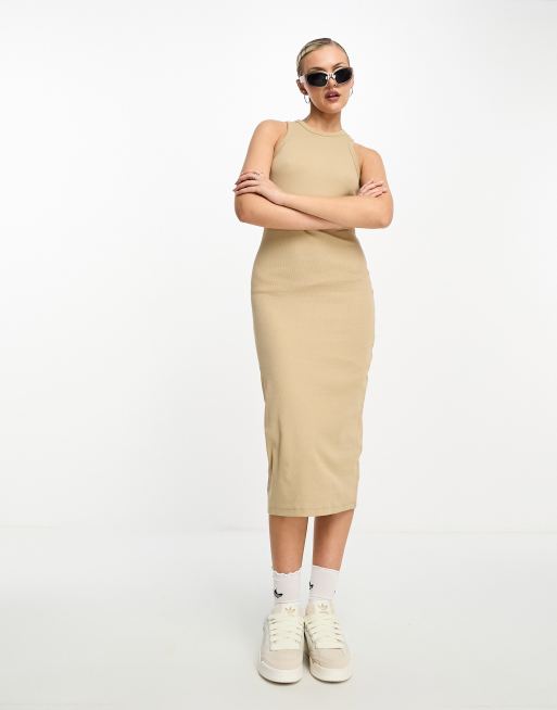 JJXX - Ribstrikket sandfarvet midaxi-kjole med racerhals