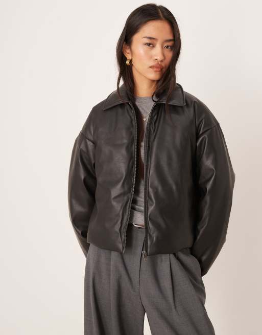JJXX - Sort jakke i imiteret læder med lynlås