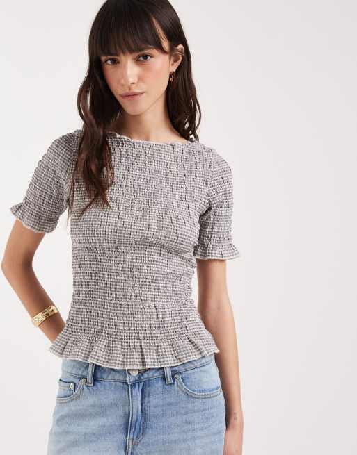 JJXX - Sort og hvid top med rynker og gingham-tern