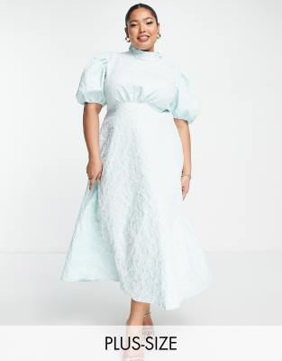 John Zack Plus - Pastelblå kjole med pufærmer og åben ryg