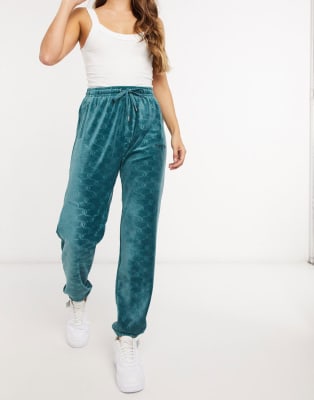 Juicy Couture - Blågrøn velour-træningssæt med præget logo - Del af sæt
