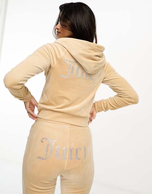 Juicy Couture - Lys beige velour-hættetrøje med lynlås - Del af sæt
