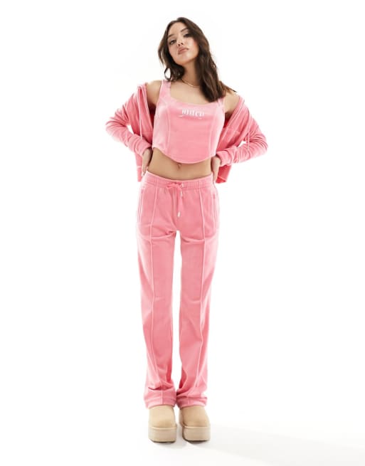 Juicy Couture - Lyserødt træningssæt i velour med joggingbukser og hættetrøje med lynlås og rhinsten