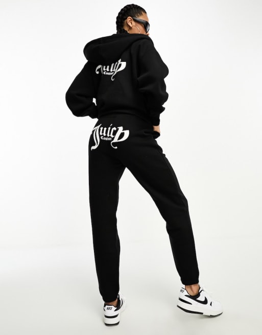 Juicy Couture - Sort fleece-sæt med hættetrøje med lynlås og joggingbukser
