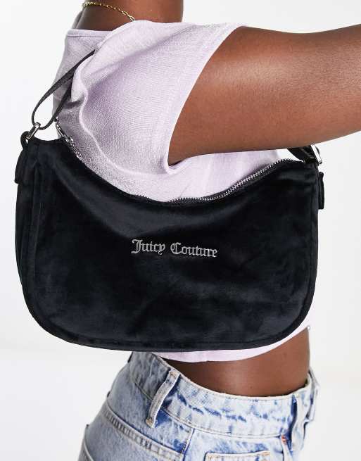 Juicy Couture - Sort skuldertaske i velour med metaldetaljer