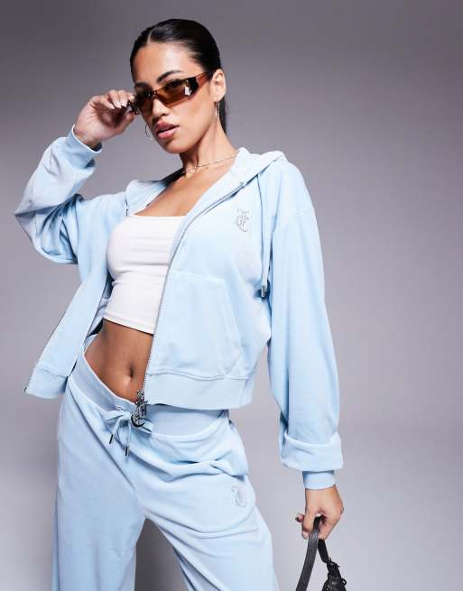 Juicy Couture - Støvet blå afslappet hættetrøje i velour med lynlås - Kun hos ASOS