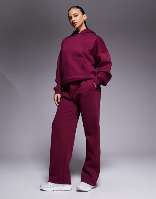 Kaiia - Bordeaux joggingbukser med vide ben og præget logo i bomuldsrigt stof - Del af sæt