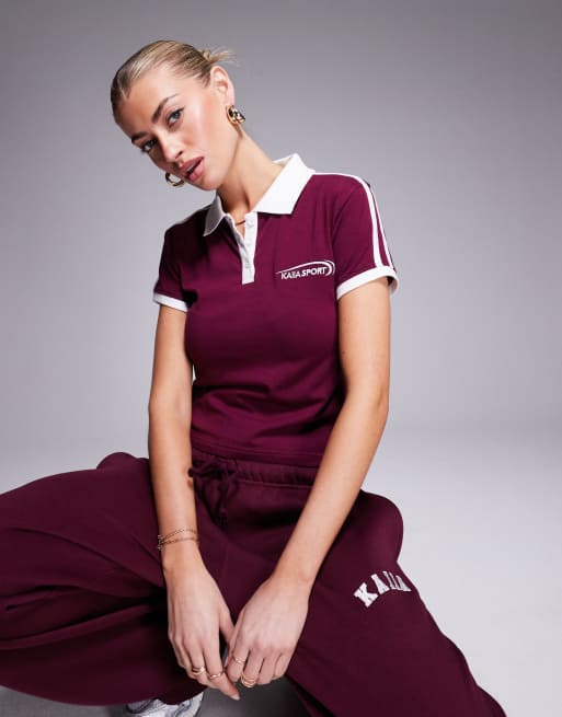 Kaiia - Bordeauxrød baby-t-shirt i bomuld med hvide kontrastkanter og polokrave - Del af sæt