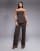 Kaiia - Brunt sæt med skræddersyet longline-top med bandeau-snit og bukser med vide ben og nålestriber - Kun hos ASOS