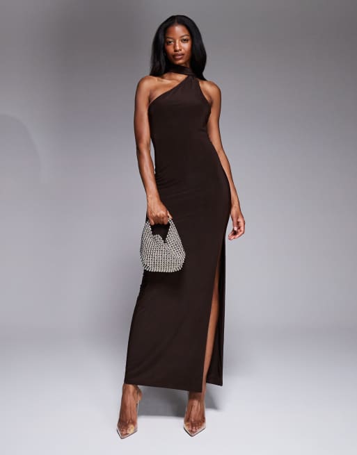 Kaiia - Chokoladebrun stram maxikjole i dobbeltlag med tørklædedetalje - Kun hos ASOS