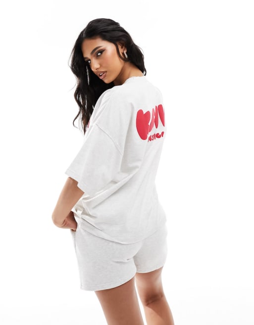 Kaiia - Design - Sæt med oversized T-shirt og joggingshorts i gråmeleret/rød