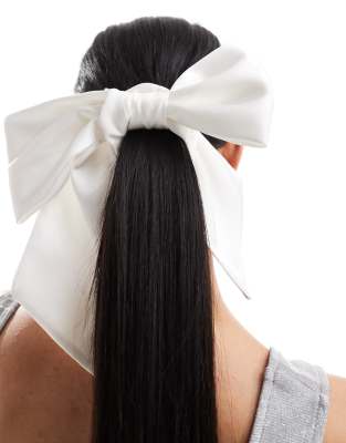 Kaiia - Hvid oversized scrunchie med sløjfedesign i satin - Kun hos ASOS