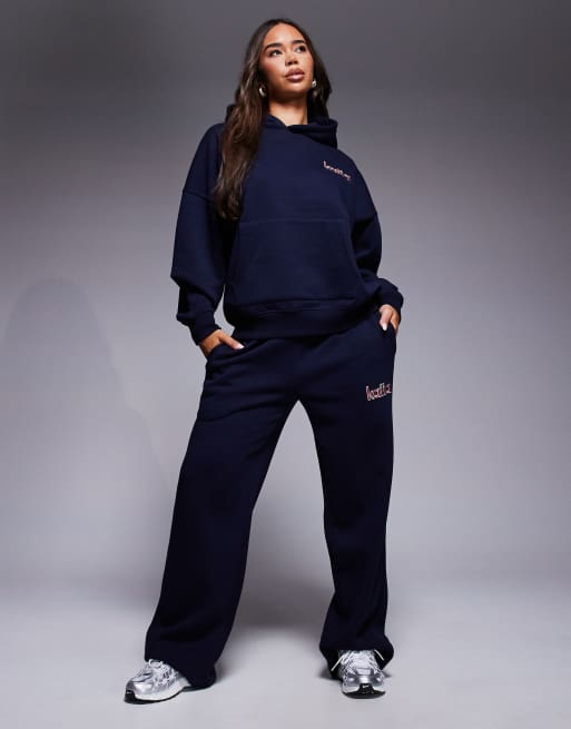 Kaiia - Marineblåt og rødt sæt med oversized hættetrøje med broderet logodetalje på ryggen og joggingbukser