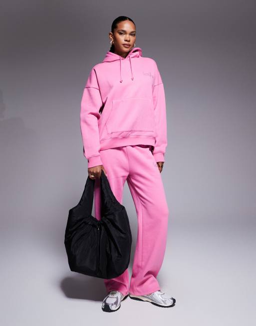 Kaiia - Pink sæt med joggingbukser med brede ben og oversized hættetrøje med rhinstens-logo - Kun hos ASOS