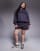 Kaiia Plus - Oversized mørkegrå hættetrøje i bomuldsblanding med logoprint - Del af sæt