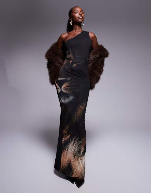 Kaiia - Sort maxikjole i mesh med leopardprint og asymmetrisk knudedetalje bagpå samt udskæringsdetaljer - Kun hos ASOS