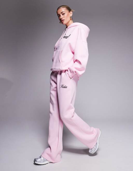 Kaiia Sport - Lyserødt/sort sæt med hættetrøje med broderet tekstlogo og joggingbukser