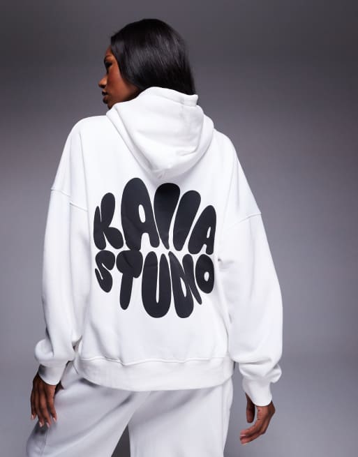 Kaiia - Studio - Cremefarvet og sort og oversized hættetrøje med print af bobletekst på ryggen - Del af sæt