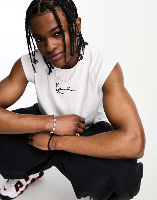 Karl Kani - Essentials - Hvid T-shirt uden ærmer med lille signaturlogo